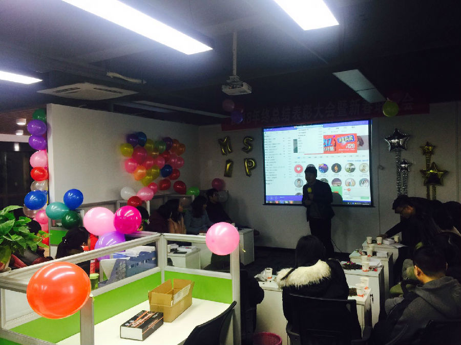 從一大早開始,同事們就開始準(zhǔn)備今天的活動(dòng)事宜,每個(gè)人都積極參與,將公司裝飾的五彩繽紛、特別喜慶!吹氣球的,將氣球布置到各個(gè)角落的,還不停發(fā)表自己的創(chuàng)意的同事們都盡最大可能將活動(dòng)場(chǎng)地布置得溫馨有氣氛。